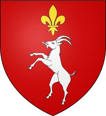 De gueules à une chèvre rampante d'argent, surmontée d'une fleur de lys d'or.